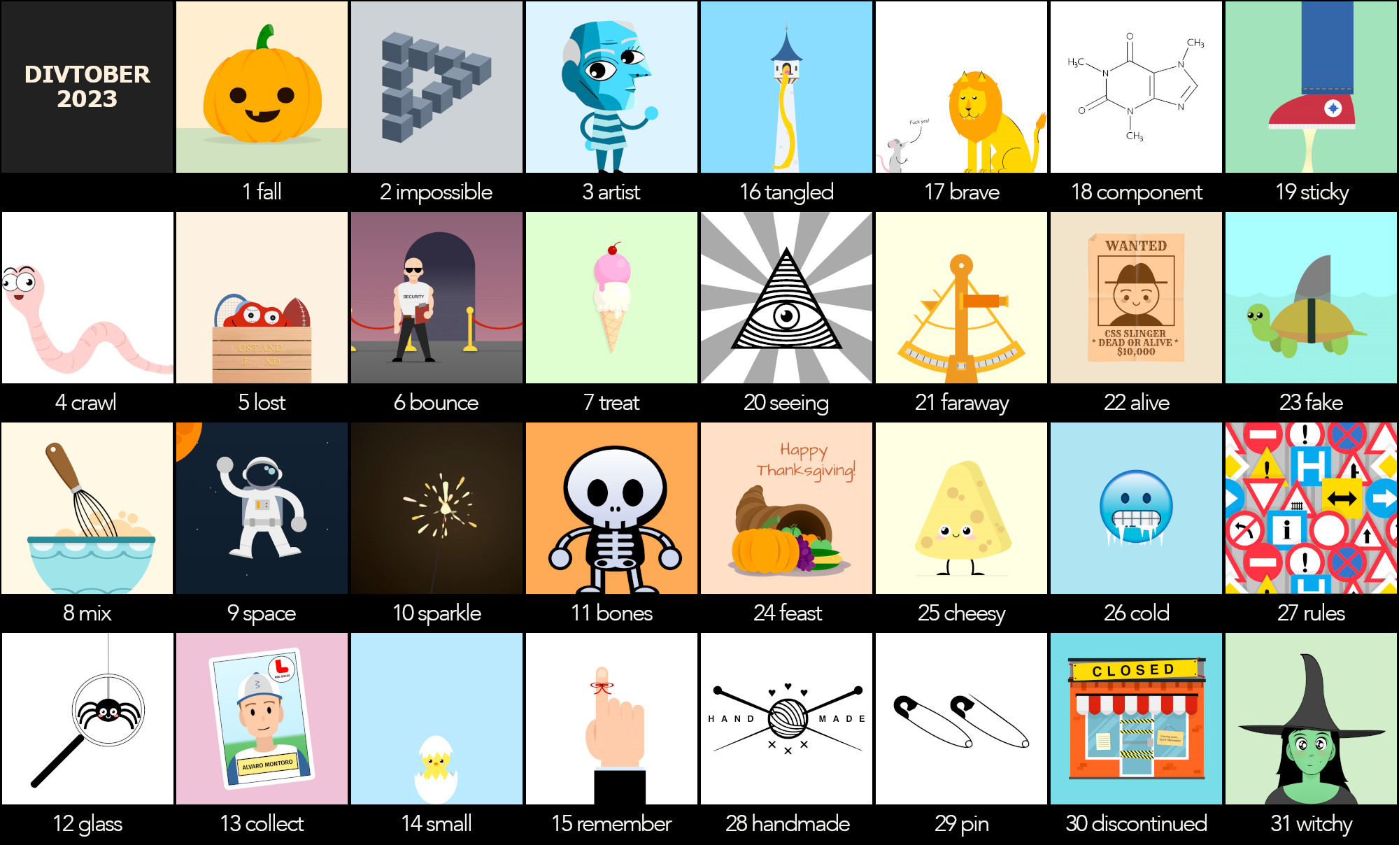 One HTML Tag. Thirty+ CSS Drawings -My Divtober 2023 Collection.