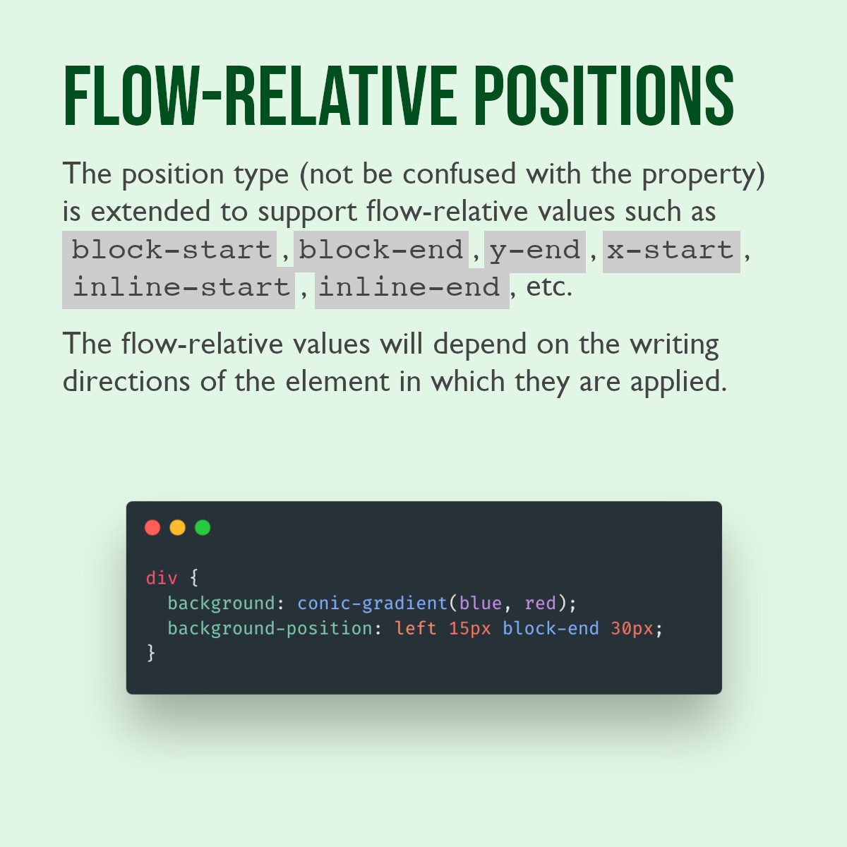 Many of these features have a common denominator: they simplify the CSS code. Things that before would require multiple rules or hacky solutions will be possible with one or two lines of CSS. As I said, it looks promising. This is a list of the new changes (more details below):