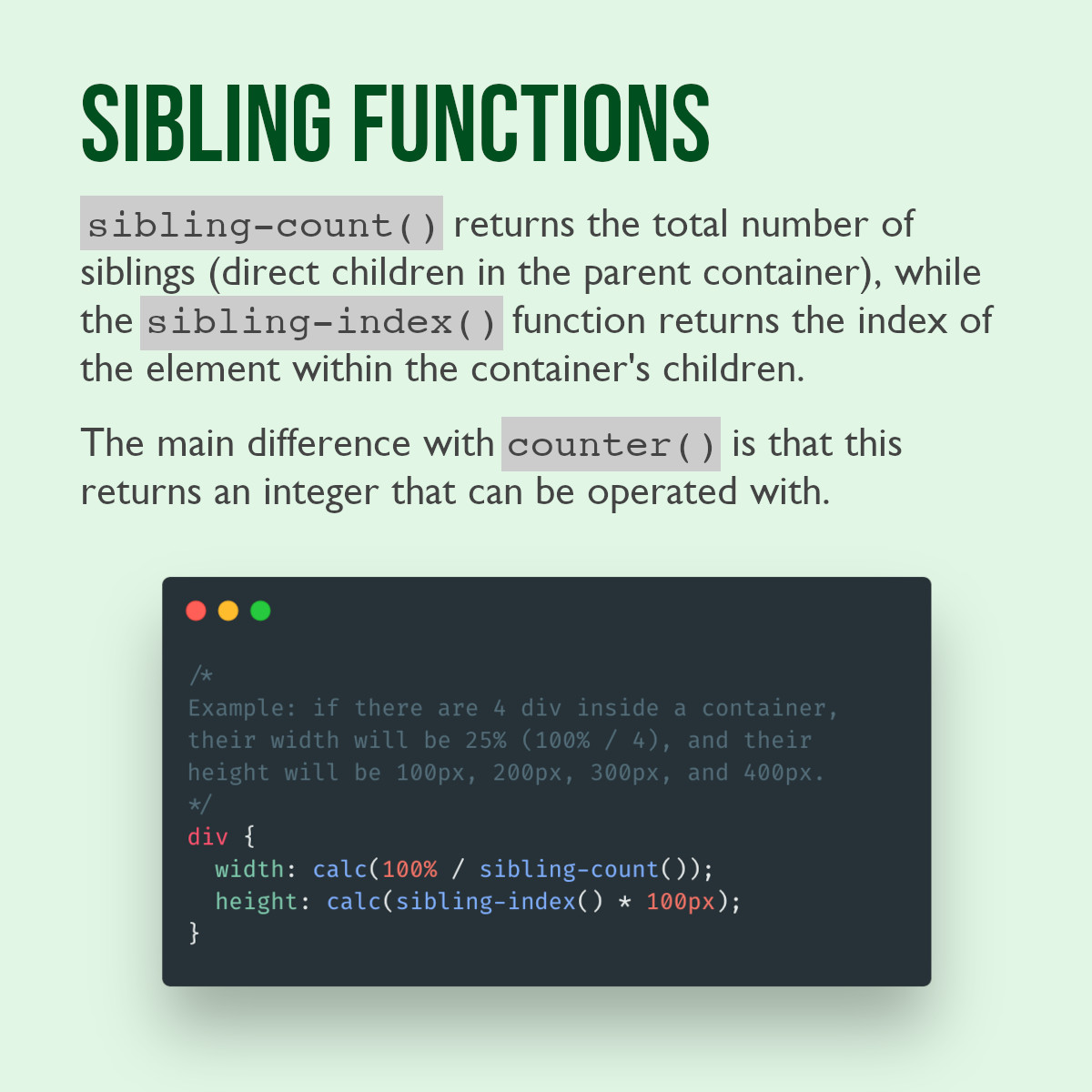 No more need to set custom properties on each element or write individual selectors with nth-child.